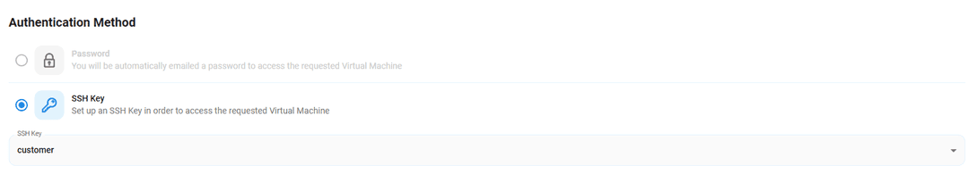 There are two authentication methods available: Password and SSH Key. SSH keys are a more secure option. To create them, please refer to our official documentation.