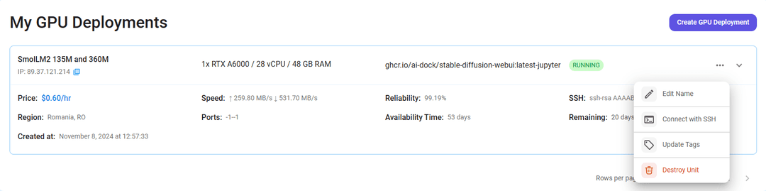 We will use 1x RTX A6000 GPU for this tutorial to achieve the fastest performance. However, you can choose a more affordable GPU with less VRAM if that better suits your requirements.