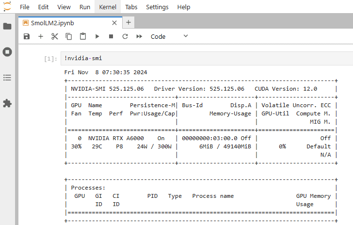 Next, If you want to check the GPU details, run the following command in the Jupyter Notebook cell: