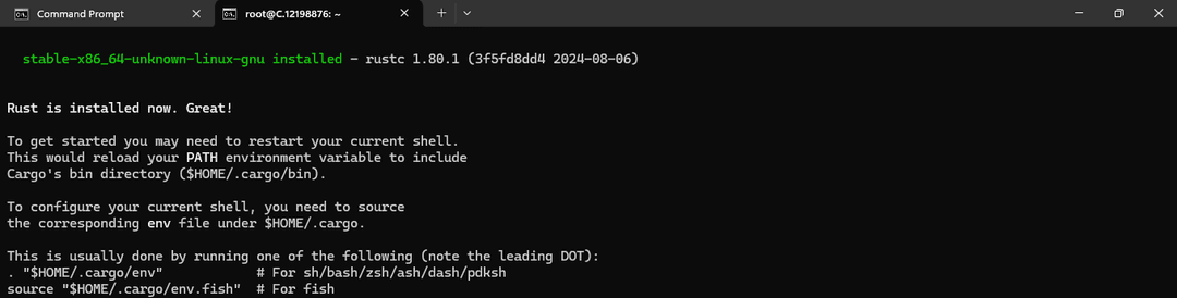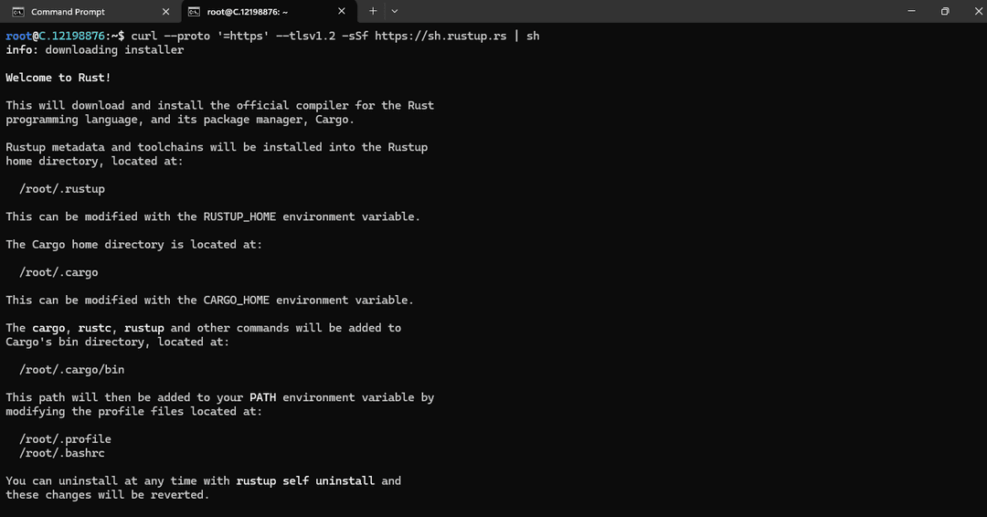After Installing Rust, you will see the following message:
