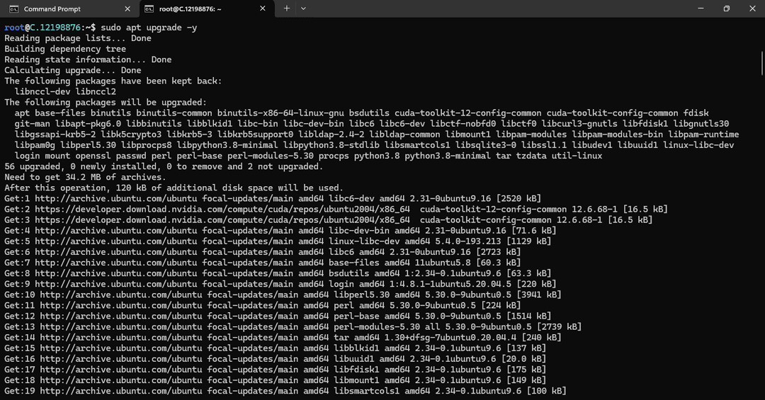 After executing the update command, execute the following command to upgrade your systems’ installed packages.