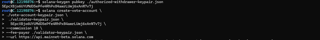 The commands above will generate three keypairs: one for a validator, one for a Vote account, and one for an authorized withdrawer