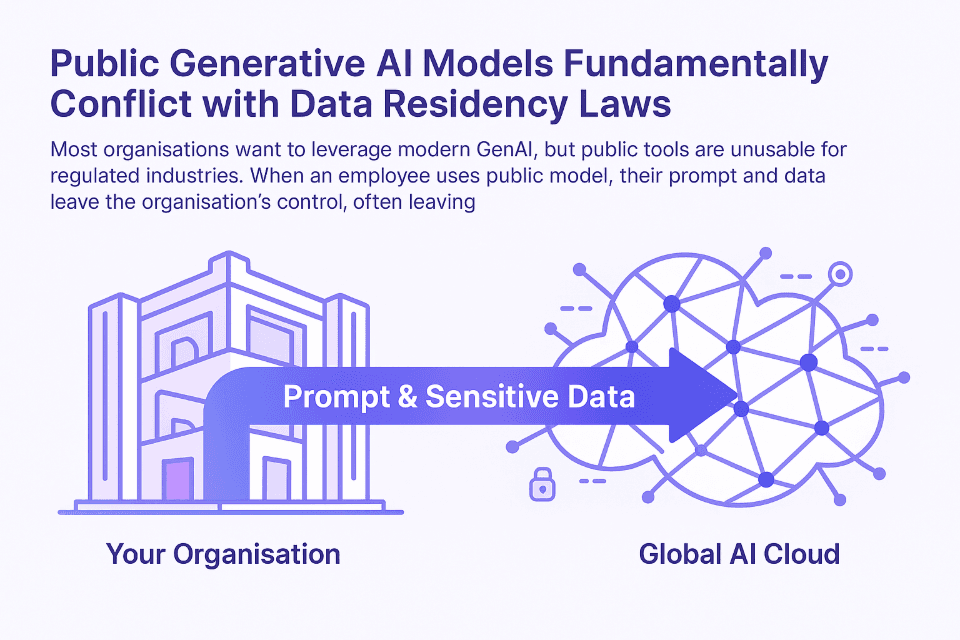 Most organisations want to use modern Generative AI, but many of them can’t use public AI tools. The reason is simple: these tools process data outside the country, outside the organisation’s control, and sometimes even across multiple global regions. For businesses and government teams that deal with sensitive information, this is totally unacceptable.