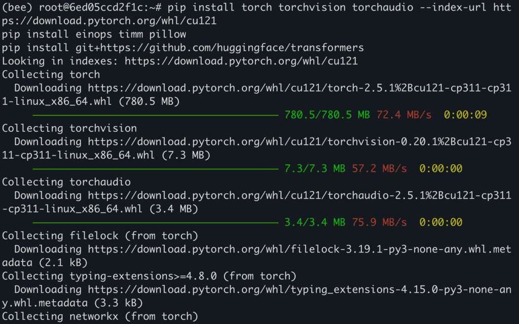 pip install torch torchvision torchaudio --index-url https://download.pytorch.org/whl/cu121