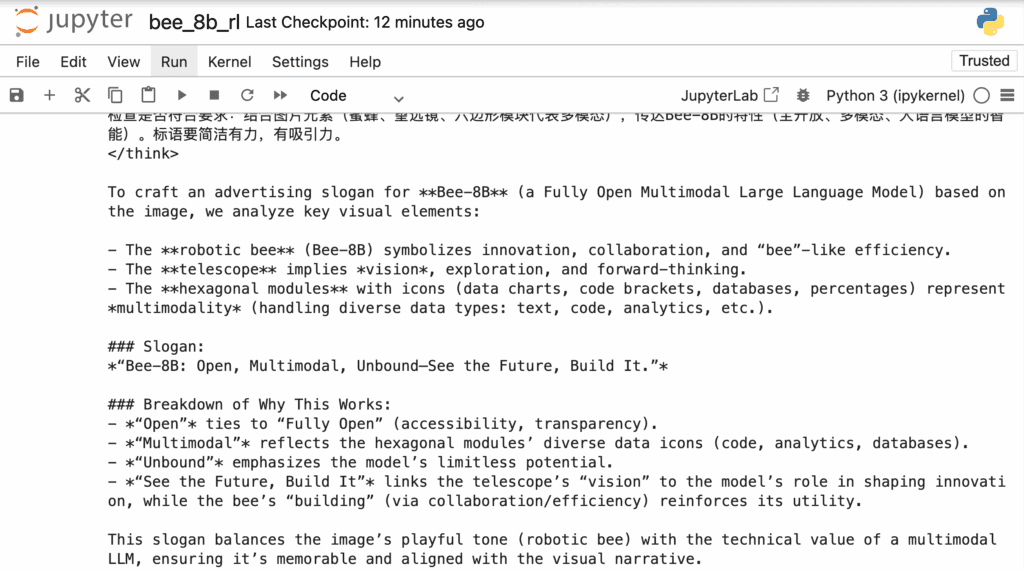 Bee-8-RL is an open-source multimodal AI, combining the power of the Bee-8B architecture, the Honey-Data-15M corpus, and the HoneyPipe curation framework to deliver state-of-the-art reasoning and visual understanding, all without proprietary barriers. Its seamless integration with tools like vLLM makes it ideal for real-world, high-performance AI workflows. Through this guide, we explored how to install and run Bee-8-RL locally, unlocking its full potential for developers, researchers, and AI enthusiasts. NodeShift Cloud amplifies this accessibility by providing an optimized environment to deploy, test, and scale models like Bee-8-RL effortlessly, ensuring that cutting-edge open AI innovation is just a few commands away from your local machine.