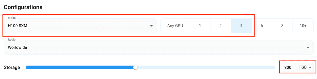 Step 3: Selecting configuration for GPU (model, region, storage)
