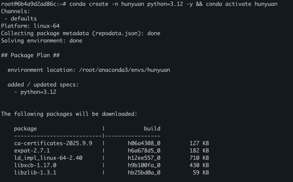 conda create -n hunyuan python=3.12 -y && conda activate hunyuan