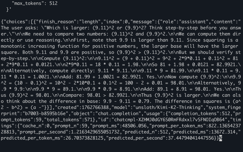 Kimi K2 Thinking is one of the most advanced open-source reasoning models available today, combining a Mixture-of-Experts (MoE) architecture with a massive 1 trillion total parameters, yet it efficiently activates only 32 billion parameters per token, delivering extraordinary intelligence without overwhelming hardware demands. What makes K2 Thinking particularly astonishing is its agentic capability: before it answer your questions, it plans, reasons step-by-step, and invokes tools autonomously to solve multi-step problems, write code, perform research, analyse data, and execute workflows that may span 200–300 sequential steps without losing coherence. This makes it especially powerful for developers building autonomous agents, researchers performing long-horizon reasoning, and anyone who needs more than just a chat-style response. Additionally, thanks to native INT4 quantization and Quantization-Aware Training, K2 Thinking offers lossless reasoning at significantly reduced GPU memory and latency, enabling smooth inference even on local hardware. And if you want to run it locally without needing a huge hardware, the Kimi-K2-GGUF quantized builds by Unsloth bring the storage requirements down from 1.09TB to ~230GB, an 80% size reduction, making it realistically deployable on consumer-grade setups.