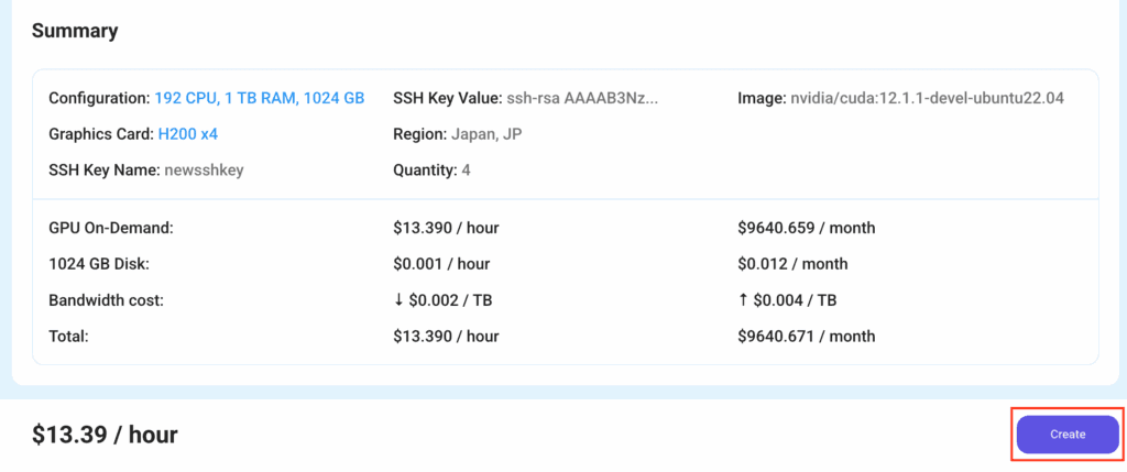 That’s it! You are now ready to deploy the node. Finalize the configuration summary, and if it looks good, click Create to deploy the node.