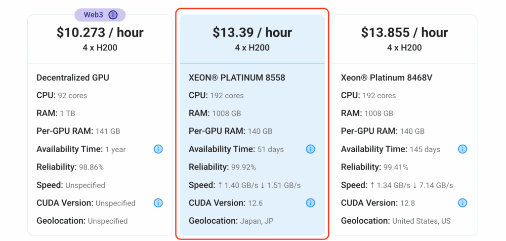 - GPU: Multiple H100s or H200s (count may vary across different bits)