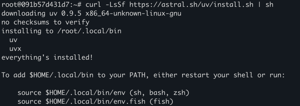 curl -LsSf https://astral.sh/uv/install.sh | sh