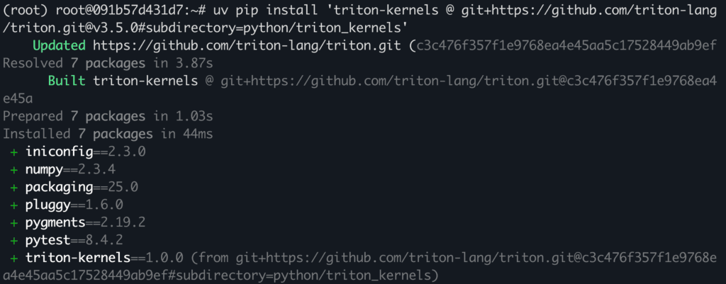 uv pip install 'triton-kernels @ git+https://github.com/triton-lang/triton.git@v3.5.0#subdirectory=python/triton_kernels'