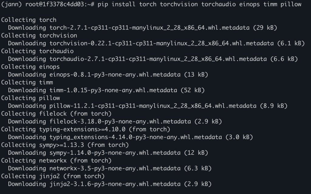 2. Once you’re inside the environment, run the following command to install the torch and other packages.