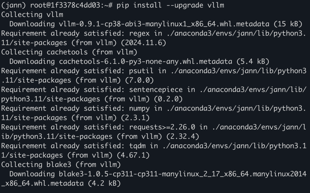 3. Run the following command to install vllm and any other remaining packages needed to run vllm and not installed already.