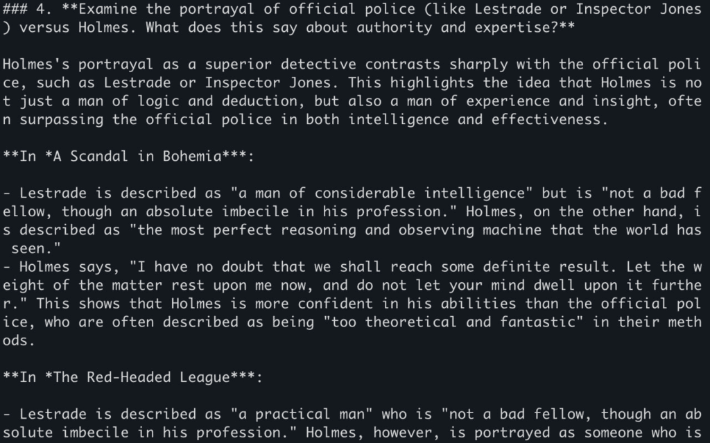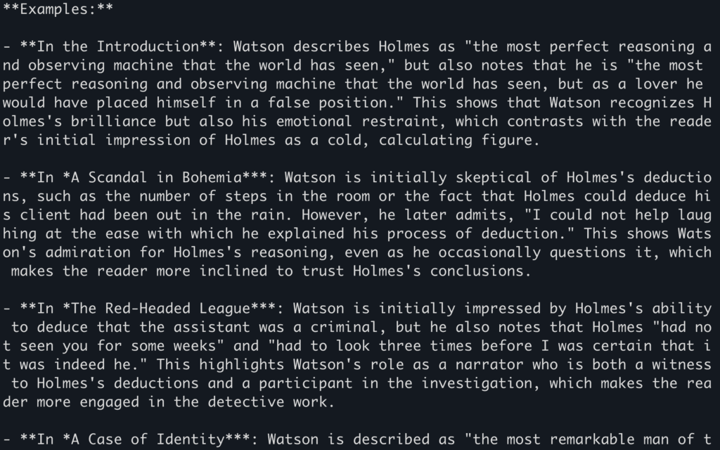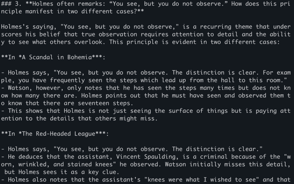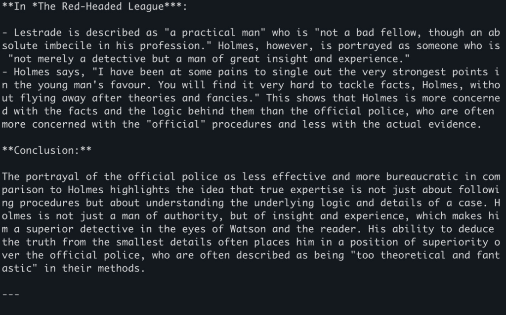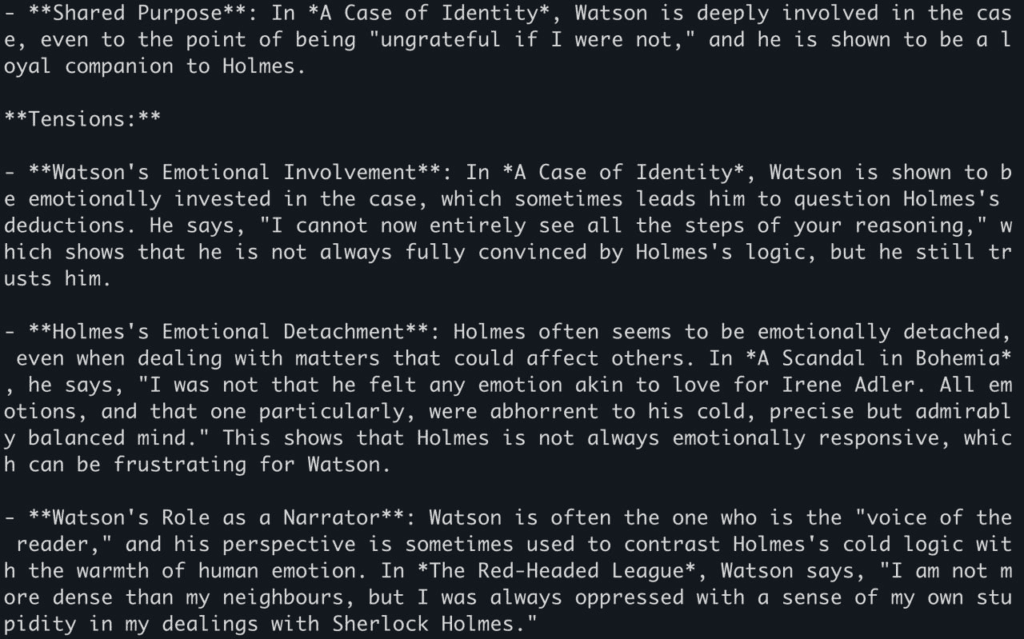 prompt = f"""Here is a substantial portion of the Adventures of Sherlock Holmes, which is in the public domain: