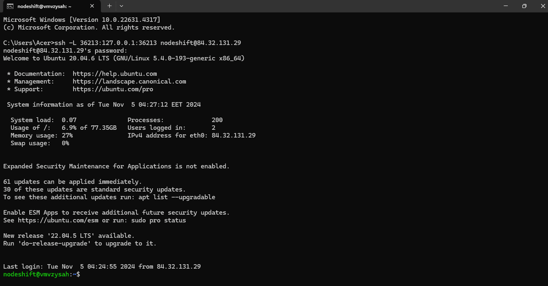 ssh -L 38885:127.0.0.1:38885 nodeshift@84.32.131.29