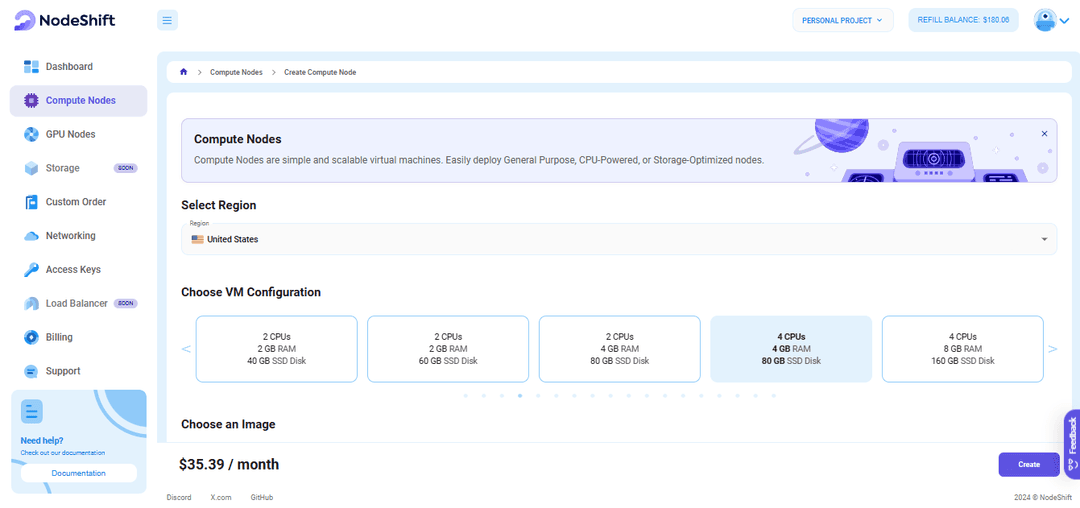NodeShift Compute Nodes offers flexible and scalable on-demand resources like NodeShift Virtual Machines which are easily deployed and come with general-purpose, CPU-powered, or storage-optimized nodes.