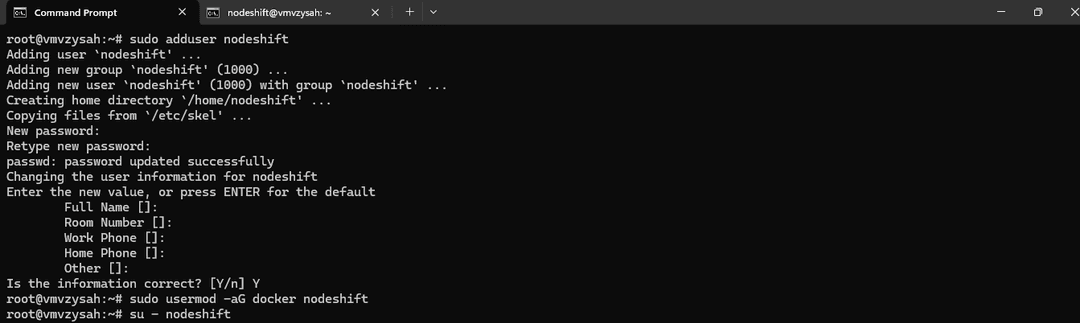 Then run the following command to add the user to the Docker group to allow it to use Docker without root privileges: