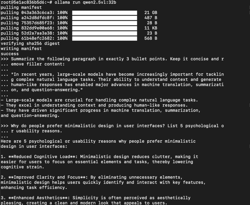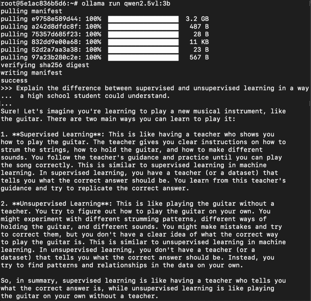 Run the following command to interact with Qwen 2.5 VL 3b Model: