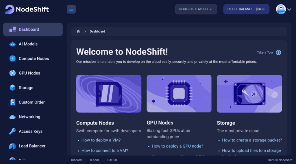For the purpose of this tutorial, we will use a GPU-powered Virtual Machine offered by NodeShift; however, you can replicate the same steps with any other cloud provider of your choice. NodeShift provides the most affordable Virtual Machines at a scale that meets GDPR, SOC2, and ISO27001 requirements.