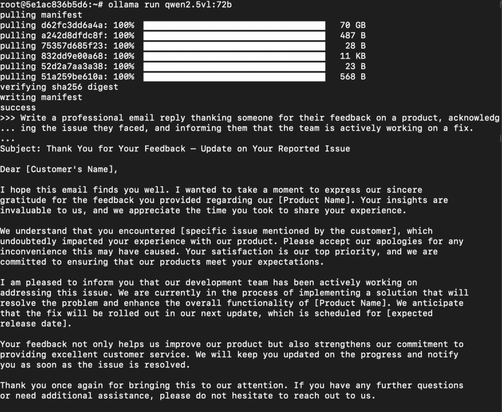 Run the following command to interact with Qwen 2.5 VL 72b Model: