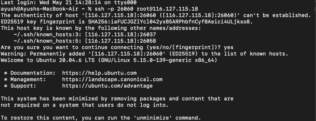 Now open your terminal and paste the proxy SSH IP or direct SSH IP.