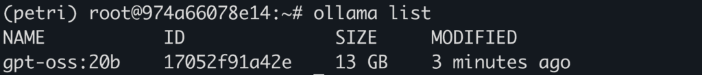 For this demo, we’re going to use GPT-OSS 20B that is available on Ollama.