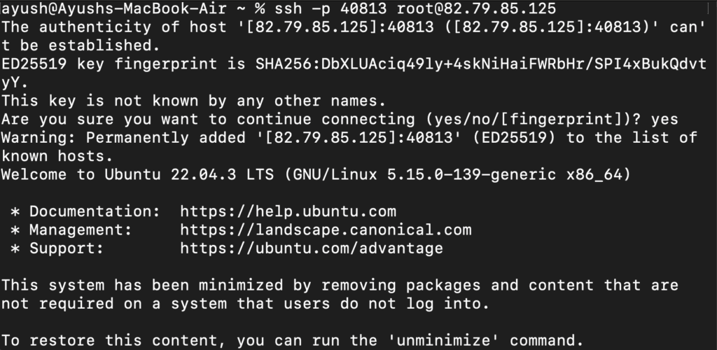 Now open your terminal and paste the proxy SSH IP or direct SSH IP.