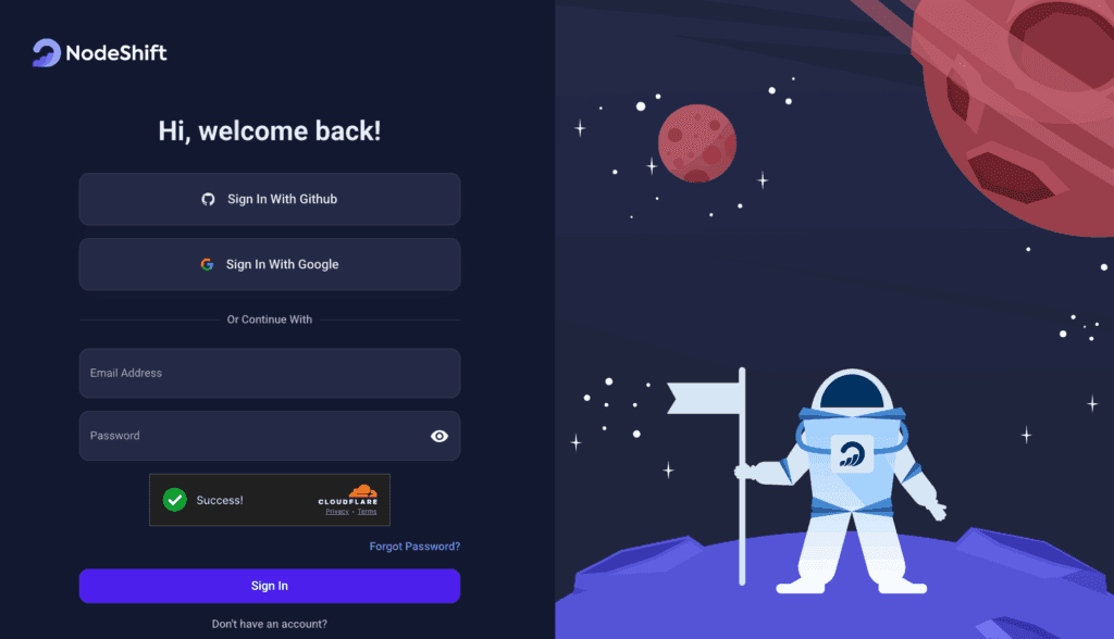 Visit the NodeShift Platform and create an account. Once you’ve signed up, log into your account.