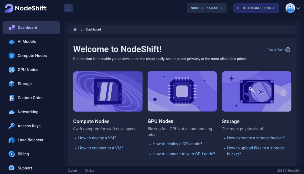 For the purpose of this tutorial, we will use a GPU-powered Virtual Machine offered by NodeShift; however, you can replicate the same steps with any other cloud provider of your choice. NodeShift provides the most affordable Virtual Machines at a scale that meets GDPR, SOC2, and ISO27001 requirements.