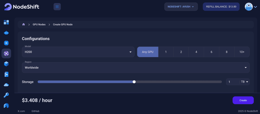 GPU Nodes are NodeShift’s GPU Virtual Machines, on-demand resources equipped with diverse GPUs ranging from H100s to A100s. These GPU-powered VMs provide enhanced environmental control, allowing configuration adjustments for GPUs, CPUs, RAM, and Storage based on specific requirements.