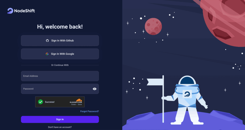 Visit the NodeShift Platform and create an account. Once you’ve signed up, log into your account.