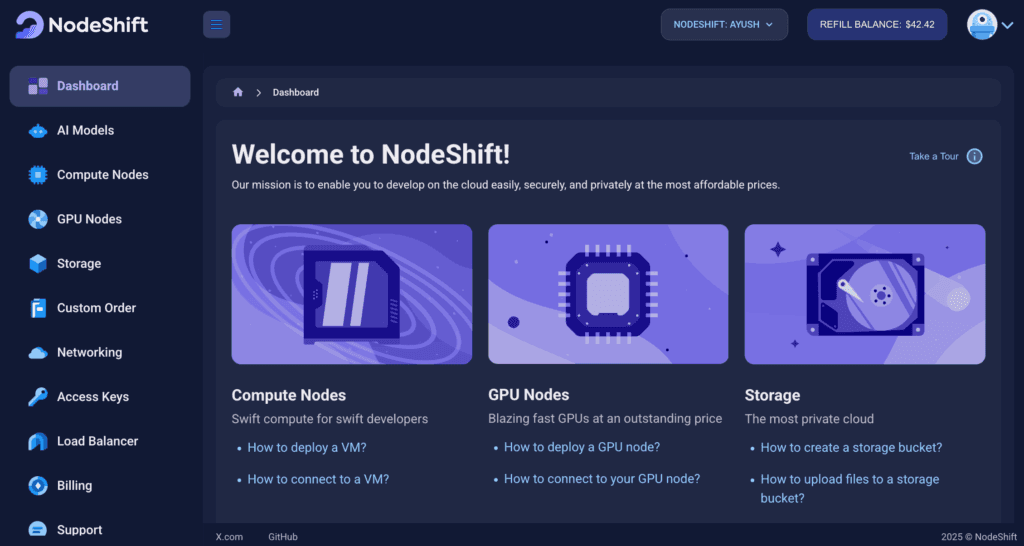 For the purpose of this tutorial, we will use a GPU-powered Virtual Machine offered by NodeShift; however, you can replicate the same steps with any other cloud provider of your choice. NodeShift provides the most affordable Virtual Machines at a scale that meets GDPR, SOC2, and ISO27001 requirements.