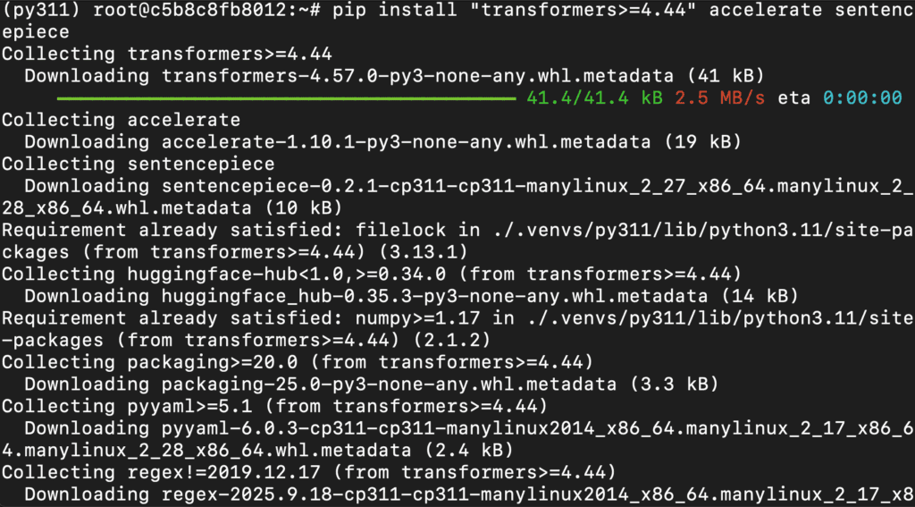) and libs (pip install "transformers>=4.44" accelerate sentencepiece