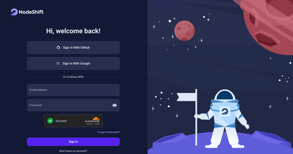 Visit the NodeShift Platform and create an account. Once you’ve signed up, log into your account.