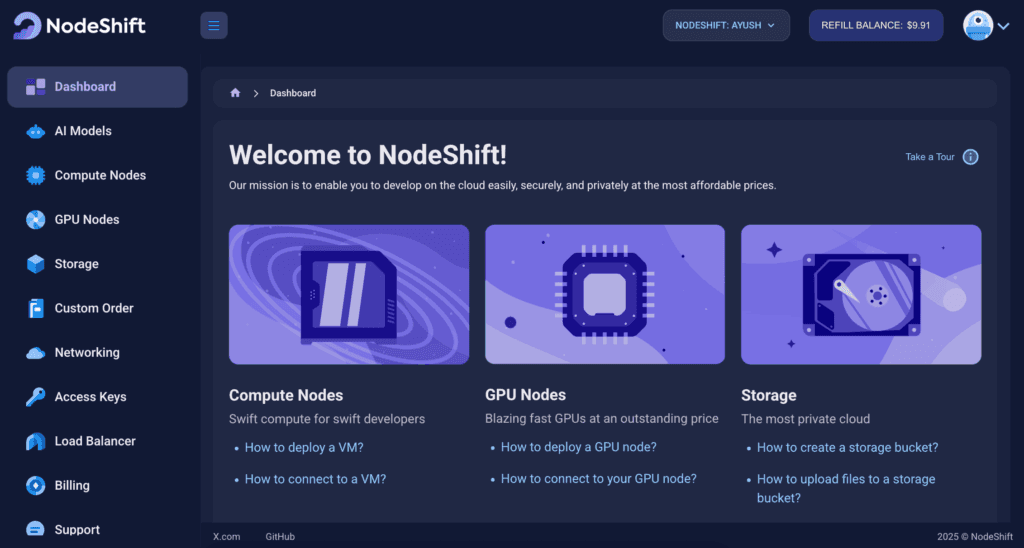 For the purpose of this tutorial, we will use a GPU-powered Virtual Machine offered by NodeShift; however, you can replicate the same steps with any other cloud provider of your choice. NodeShift provides the most affordable Virtual Machines at a scale that meets GDPR, SOC2, and ISO27001 requirements.