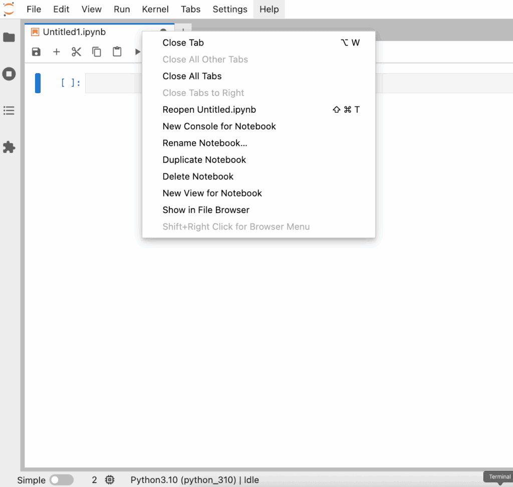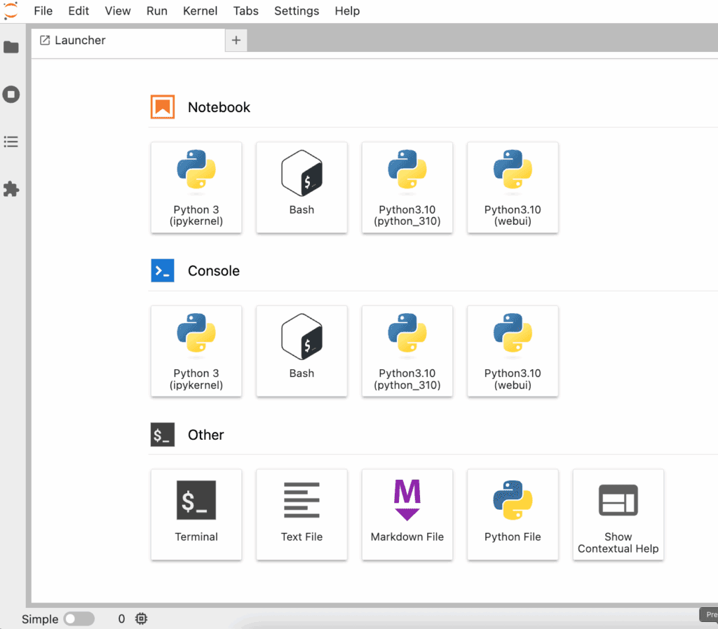 - In the Launcher screen, under Notebook, click on Python3.10 (python_310).