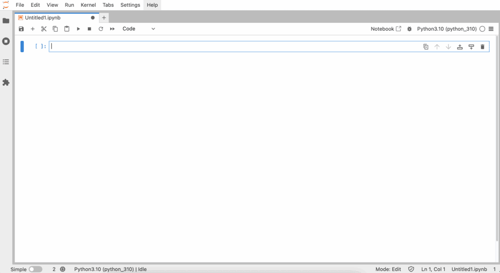 - This will open a new notebook editor with an empty code cell where you can type commands.