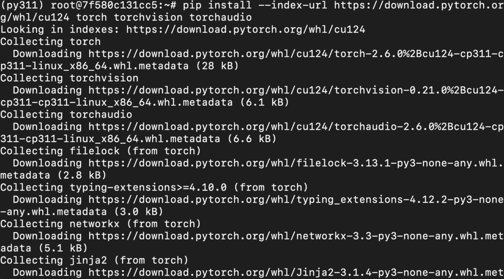 pip install --index-url https://download.pytorch.org/whl/cu124 torch torchvision torchaudio