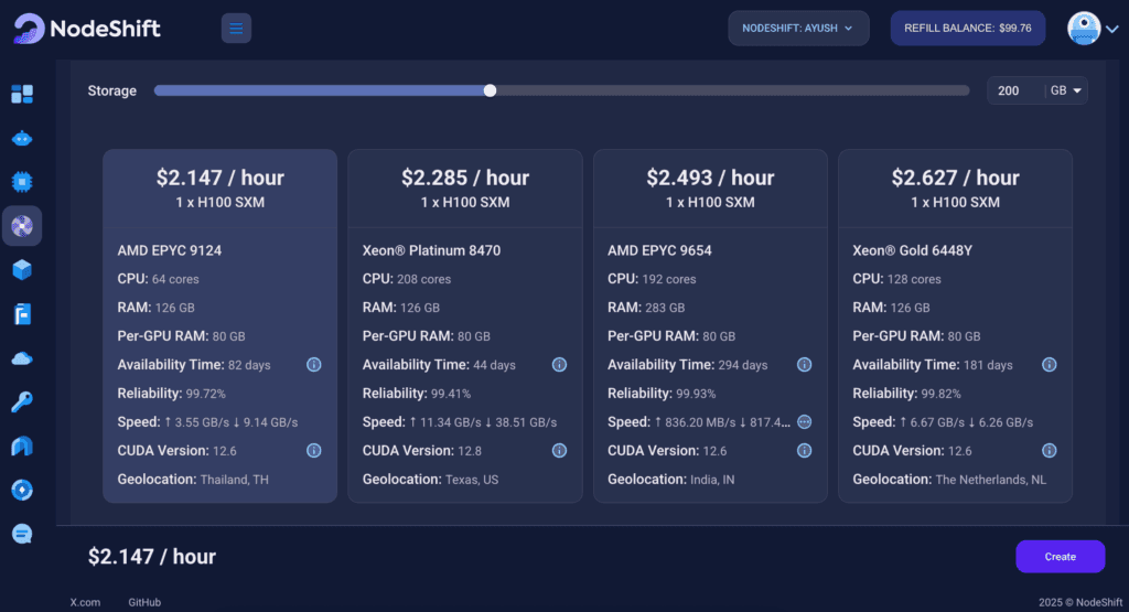 GPU Nodes are NodeShift’s GPU Virtual Machines, on-demand resources equipped with diverse GPUs ranging from H200s to A100s. These GPU-powered VMs provide enhanced environmental control, allowing configuration adjustments for GPUs, CPUs, RAM, and Storage based on specific requirements.