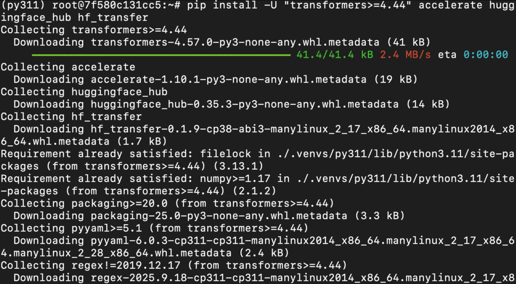 pip install -U "transformers>=4.44" accelerate huggingface_hub hf_transfer
