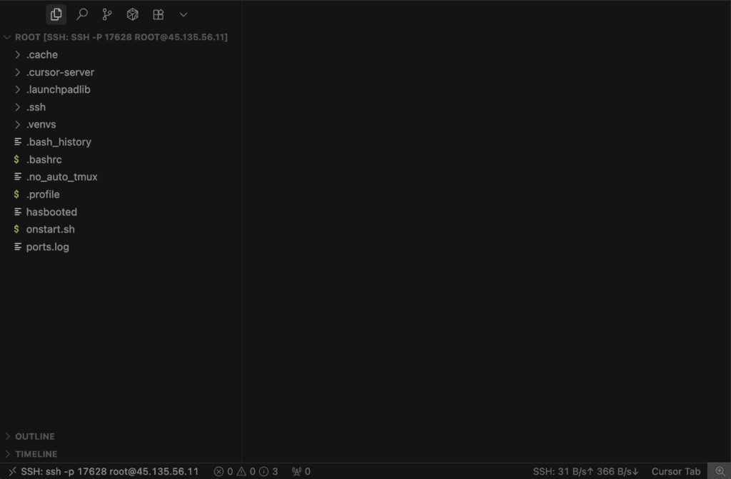 - You can use popular editors like VS Code, Cursor, or any other IDE that supports SSH remote connections.