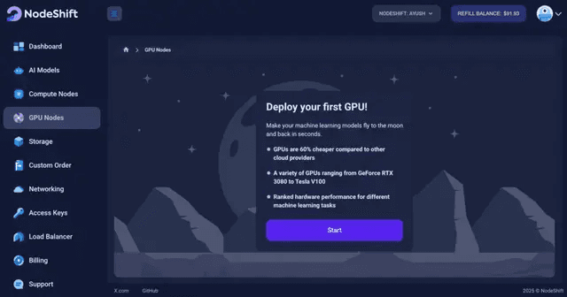 For the purpose of this tutorial, we will use a GPU-powered Virtual Machine offered by NodeShift; however, you can replicate the same steps with any other cloud provider of your choice. NodeShift provides the most affordable Virtual Machines at a scale that meets GDPR, SOC2, and ISO27001 requirements.