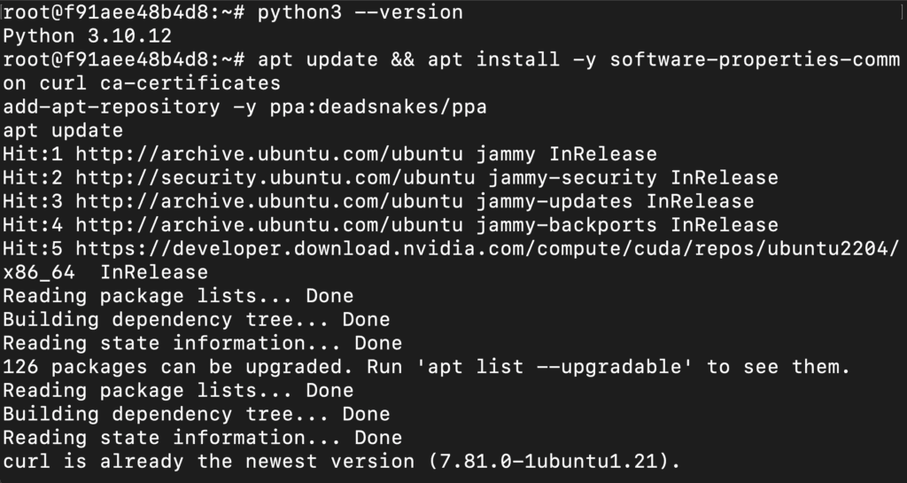 If you check the version of the python, system has Python 3.10.12 available by default. To install a higher version of Python, you’ll need to use the deadsnakes PPA.