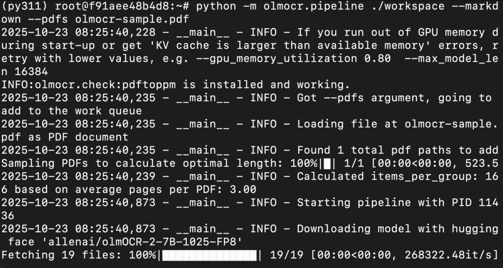 Step 14: Run the olmOCR pipeline on your Sample PDF