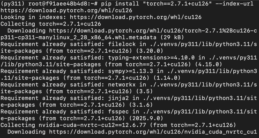 pip install "torch==2.7.1+cu126" --index-url https://download.pytorch.org/whl/cu126
