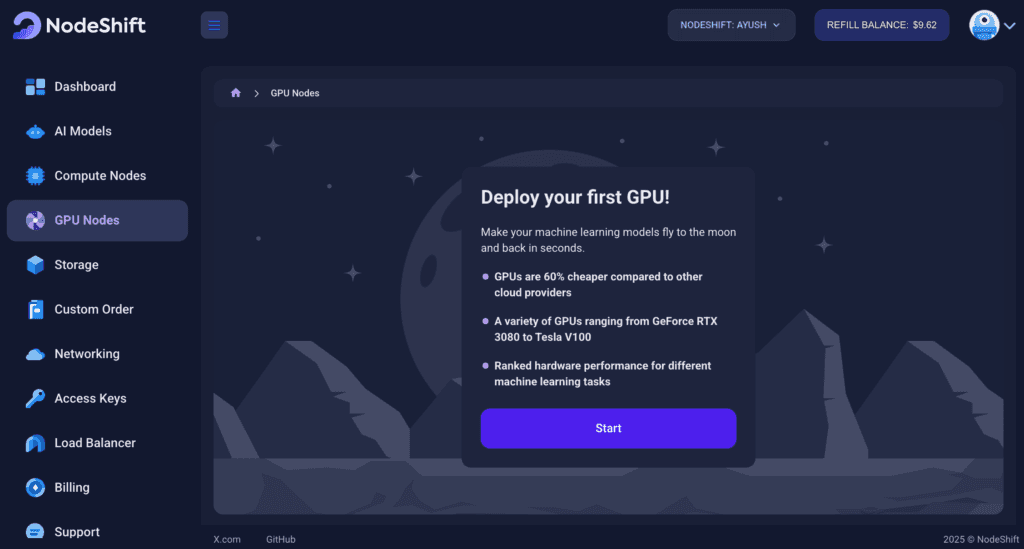 For the purpose of this tutorial, we will use a GPU-powered Virtual Machine offered by NodeShift; however, you can replicate the same steps with any other cloud provider of your choice. NodeShift provides the most affordable Virtual Machines at a scale that meets GDPR, SOC2, and ISO27001 requirements.