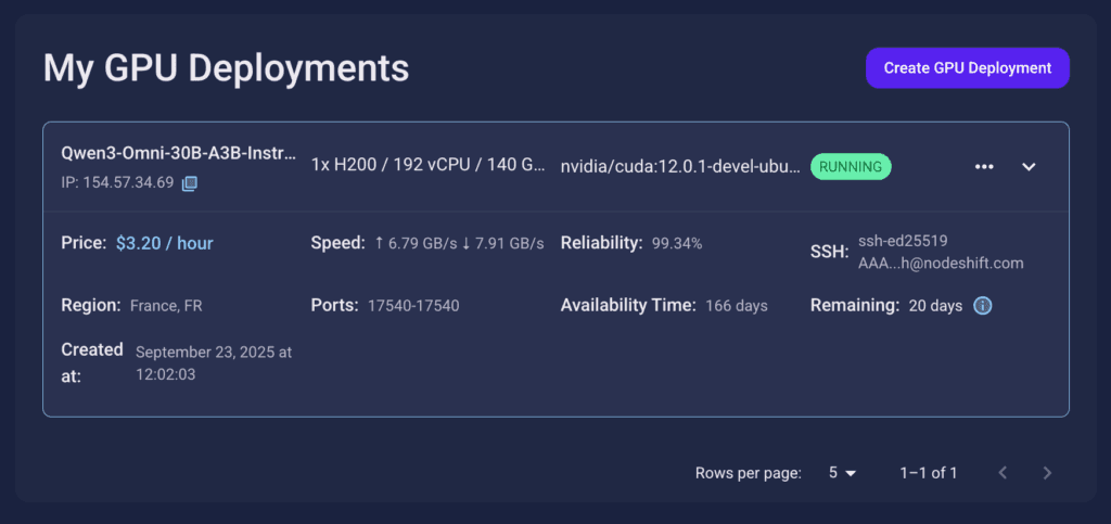 That’s it—you’ve got Qwen3-Omni-30B-A3B-Instruct running end-to-end on a NodeShift GPU VM, with clean SDPA attention (no FlashAttention headaches), multimodal inputs (image + audio), and real-time text/speech output. This setup is reproducible, stable, and ready for experiments—whether you’re testing ASR/AV, building a voice chat demo, or benchmarking against your own datasets.