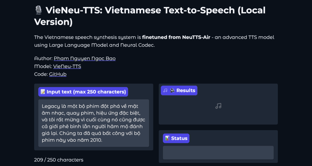 The rapid evolution of Text-to-Speech (TTS) technology has finally reached a milestone for Vietnamese users with VieNeu-TTS, the first-ever Vietnamese TTS model capable of running entirely on personal devices. Fine-tuned from NeuTTS Air, this model brings hyper-realistic, natural Vietnamese voices that are generated instantly and locally, even on mid-range CPUs. At its core lies the Qwen 0.5B LLM backbone, striking a rare balance between speed, compactness, and exceptional sound quality. VieNeu-TTS isn’t just another open-source model; it’s a complete, privacy-first solution designed for real-world use in voice agents, virtual assistants, educational tools, interactive toys, and secure offline applications. With NeuCodec powering its audio generation and efficient formats like Safetensors and GGUF (Q8/Q4) enabling lightweight inference, VieNeu-TTS delivers real-time speech synthesis without draining your system’s power or requiring any GPU setup.