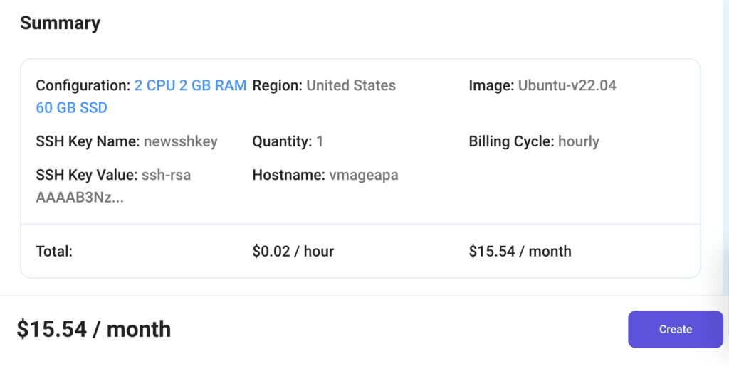 That’s it! You are now ready to deploy the node. Finalize the configuration summary; if it looks good, go ahead and click Create to deploy the node.